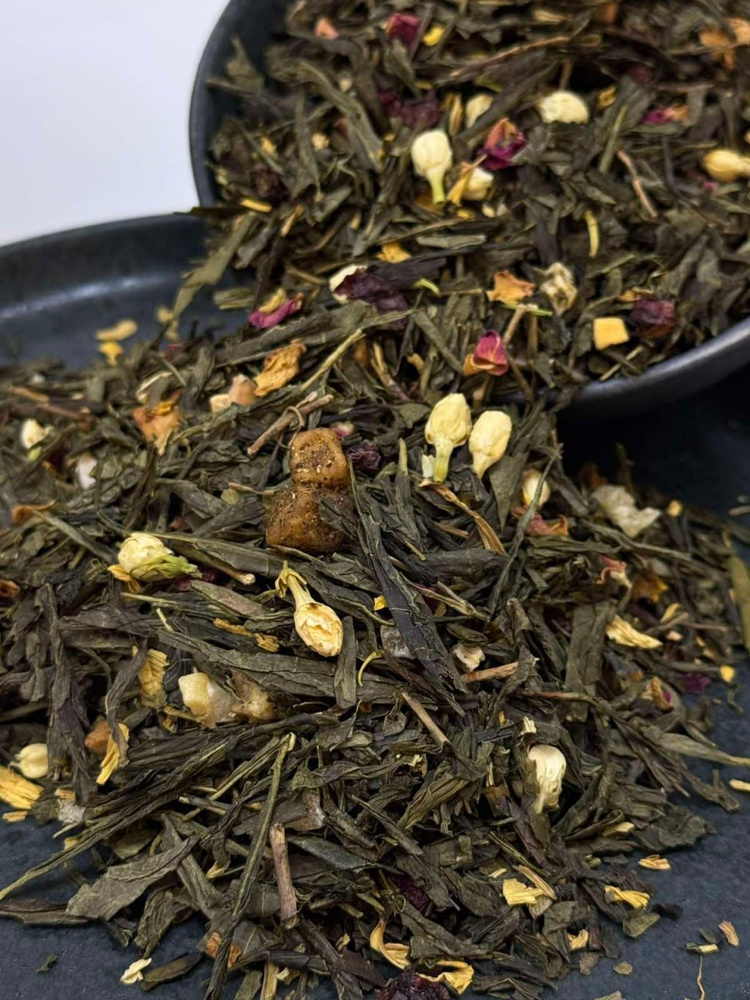 Багата суміш зеленого чаю зі шматочками журавлини, яблука, ананаса та папаї, доповнена пелюстками троянди, жасмину і соняшника. Вирізняється яскравим ягідним ароматом і насиченим багатогранним смаком.