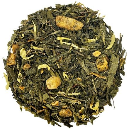 Зелений чай із надзвичайно потужним натуральним ароматом дині. Містить значну кількість цукатів дині та її натуральний екстракт, квіти нагідок та цедру апельсина.
