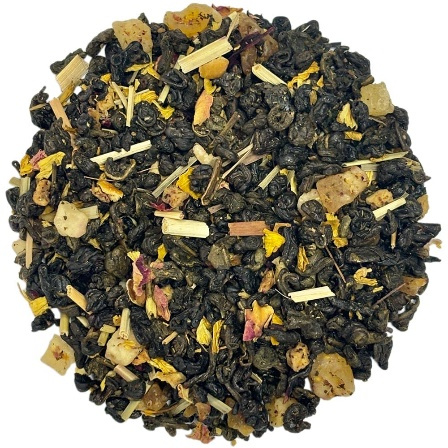 Зелений чай із шматочками яблука, манго, персика, пелюстками соняшника, гібіскуса, троянди та лимонною травою. Має вишуканий та ніжний аромат стиглого соковитого нектарина із помітним відтінком вершків та згущеного молока.