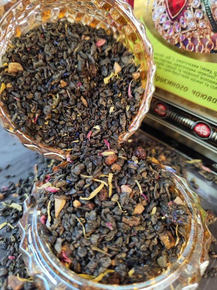 Зелений чай з шматочками родзинок, цукатами ананаса, ягодами смородини, шматочками червоної папайї, пелюстками календули, синьої і червоної волошки. Має насичений ананасово-грейпфрутовий аромат і солодкий післясмак.