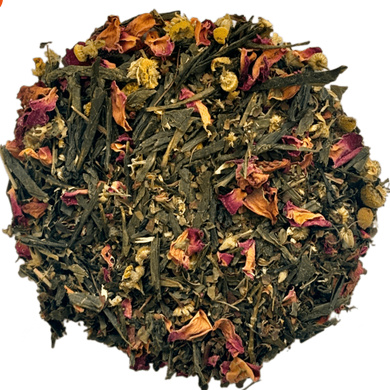 Зелений ароматизований чай, що цікий натуральним помітним ароматом східних солодощів та насиченим солодким смаком із помітними нотками індійських трав та ромашки. Має заспокійливу дію.
