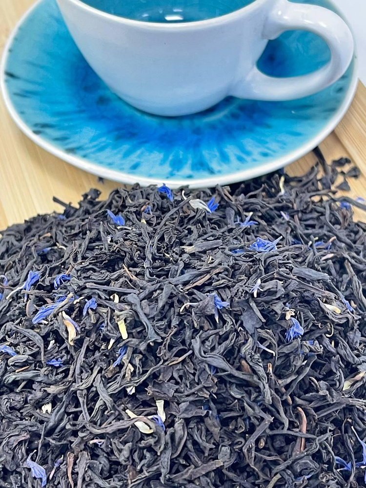 Чорний цейлонський чай Ерл Грей "Блакитний квітка" з бергамотом і васильком. Має особливий пряний відтінок аромату і класичний смак.