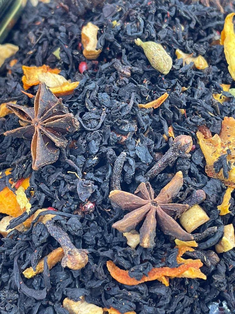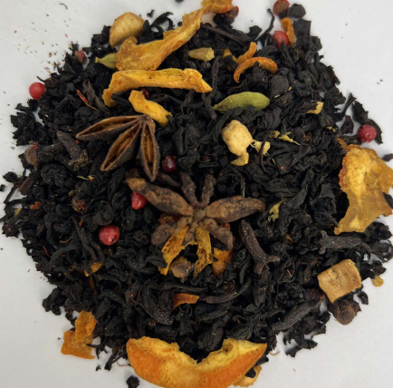 Зігріваюча суміш кенійського та індійського чаю зцедрою апельсина, яблуком, сафлором та цілим набором спецій - бодян, гвоздика, кардамон, рожевий перець, імбир. Має потужний зігріваючий ефект, насичений смак та приємний цитрусово-пряний аромат.