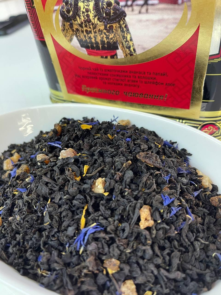 Чорний чай із шматочками ананаса та папайї, пелюстками соняшника та волошки. Має яскравий аромат стиглої агави із шлейфом алое та нотками ананасу.