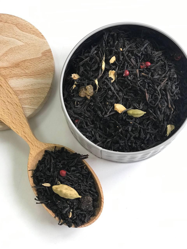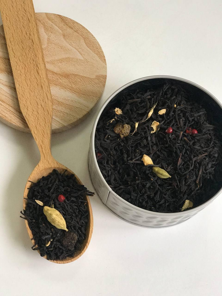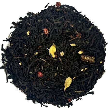 Чорний ароматизований чай із зеленим кардамоном, гвоздикою, фенхелем, імбиром, анісом і червоним перцем. Має приємний смак і аромат.
