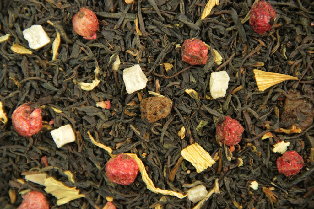 Чорний чай, ароматизований шматочками ананаса, папайї, ягоди смородини, вишні та пелюстками соняшника та листям малини. Має багатий аромат і приємний смак.