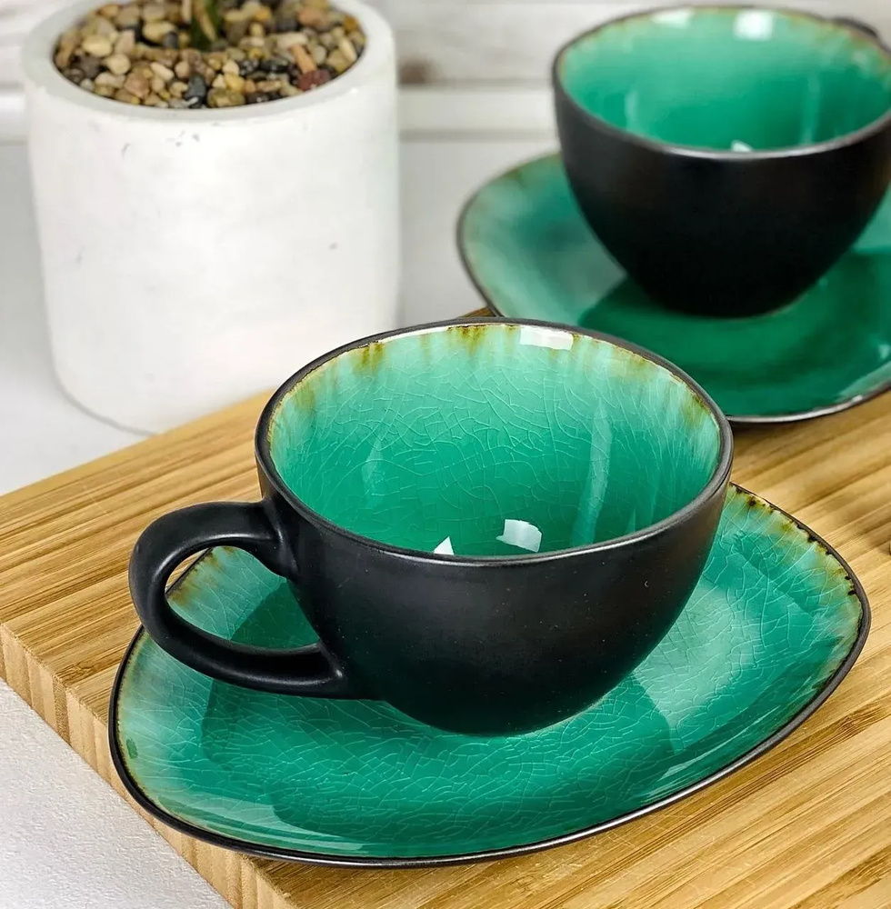 Набір 4 чашки+4 блюдця «Зелена лагуна» кавовий, 120 мл