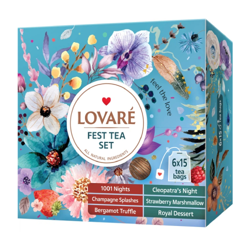 Колекція чаю Lovare Fest Tea Set, 6 видів по 15 пакетиків поєднує в собі 6 різних смаків чорного та зеленого чаю.
