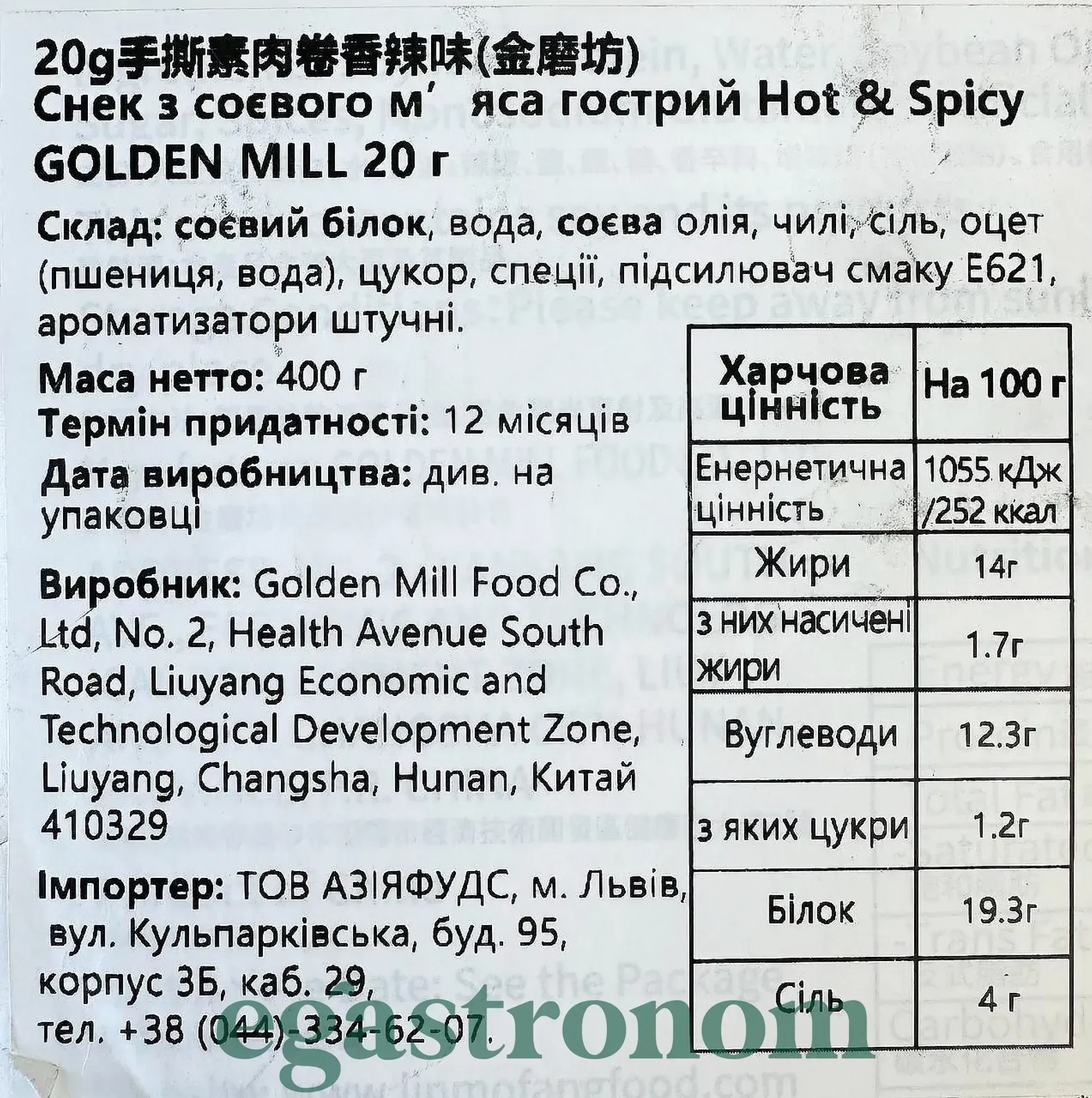 Снеки соєве м’ясо гостре Голден мілл Golden mill hot&spicy 20g 20шт/пач 20уп/ящ