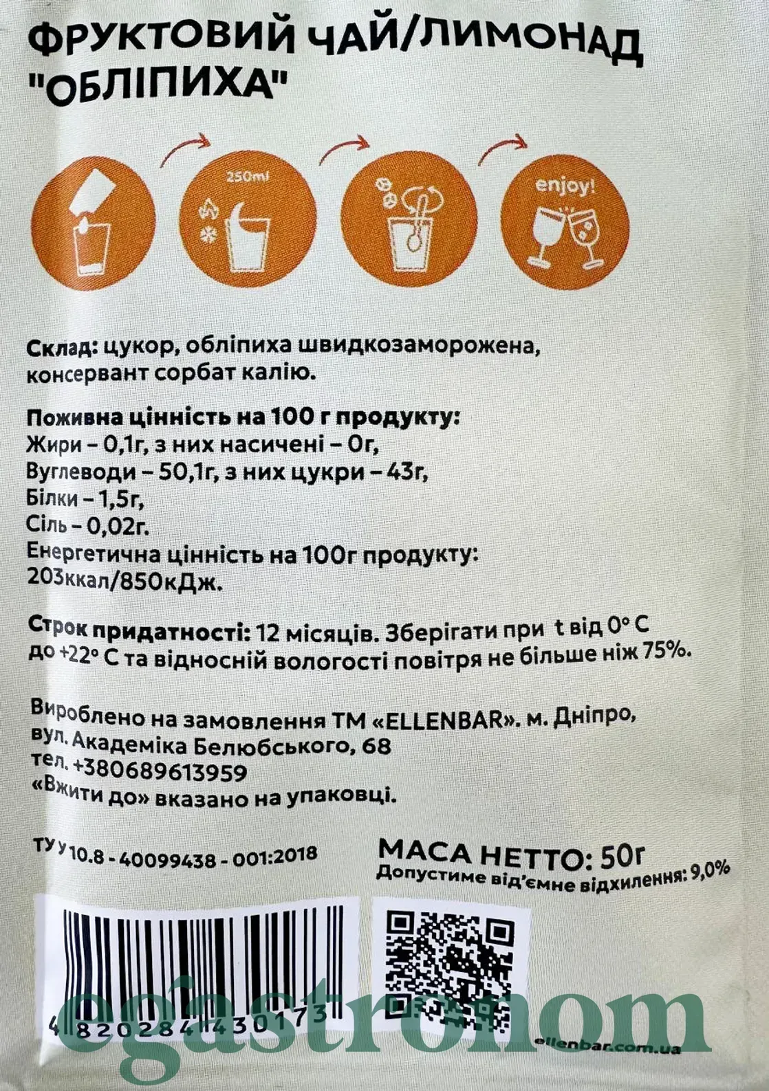 Чай концентрат обліпиха Еленбар Ellenbar 50g 12шт/ящ Чай концентрат обліпиха Еленбар Ellenbar 50g 12шт/ящ. Зображення №2