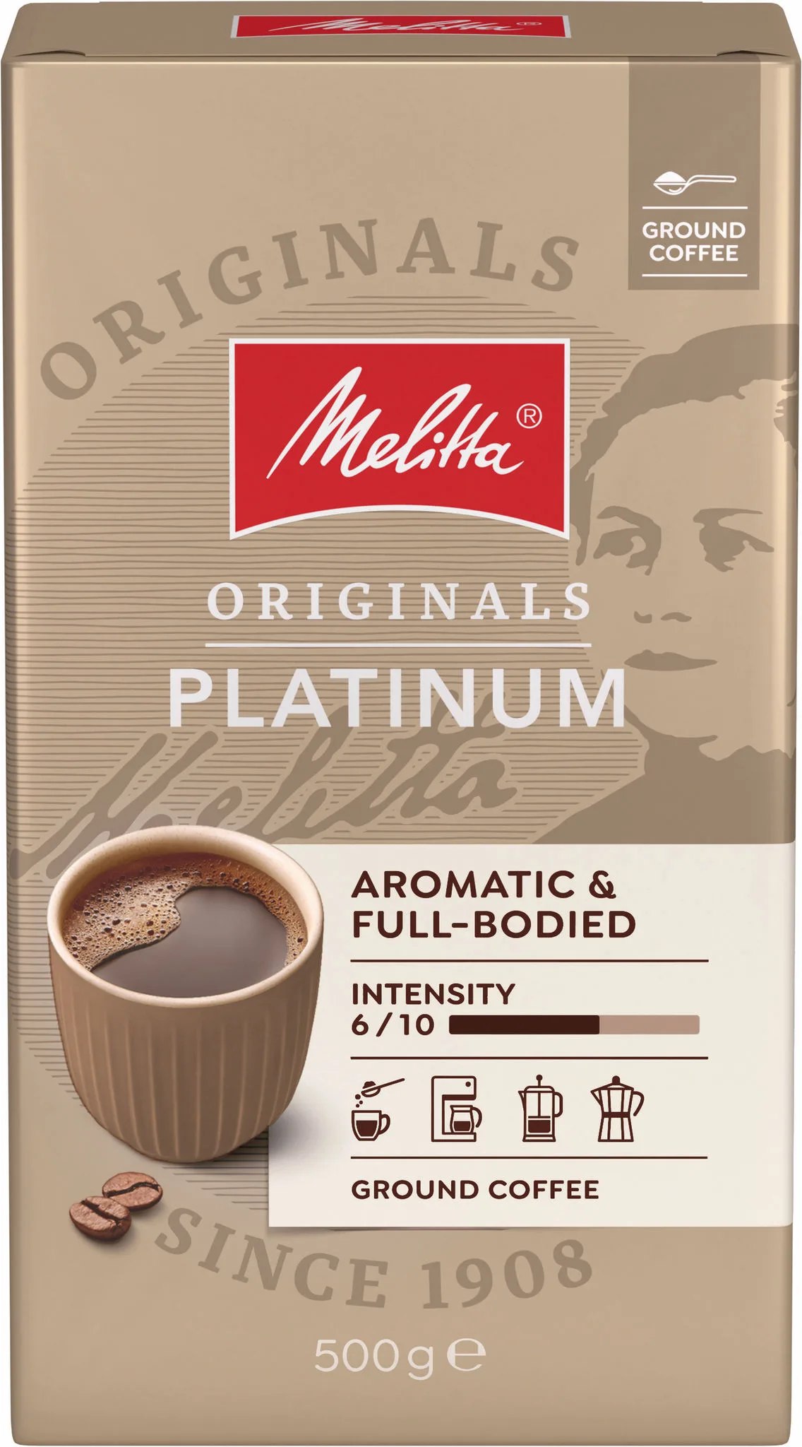 Кава мелена Melitta Originals Platinum, 500 г — це преміальний бленд від німецького бренду Melitta, створений для поціновувачів насиченого смаку та витонченого аромату.
