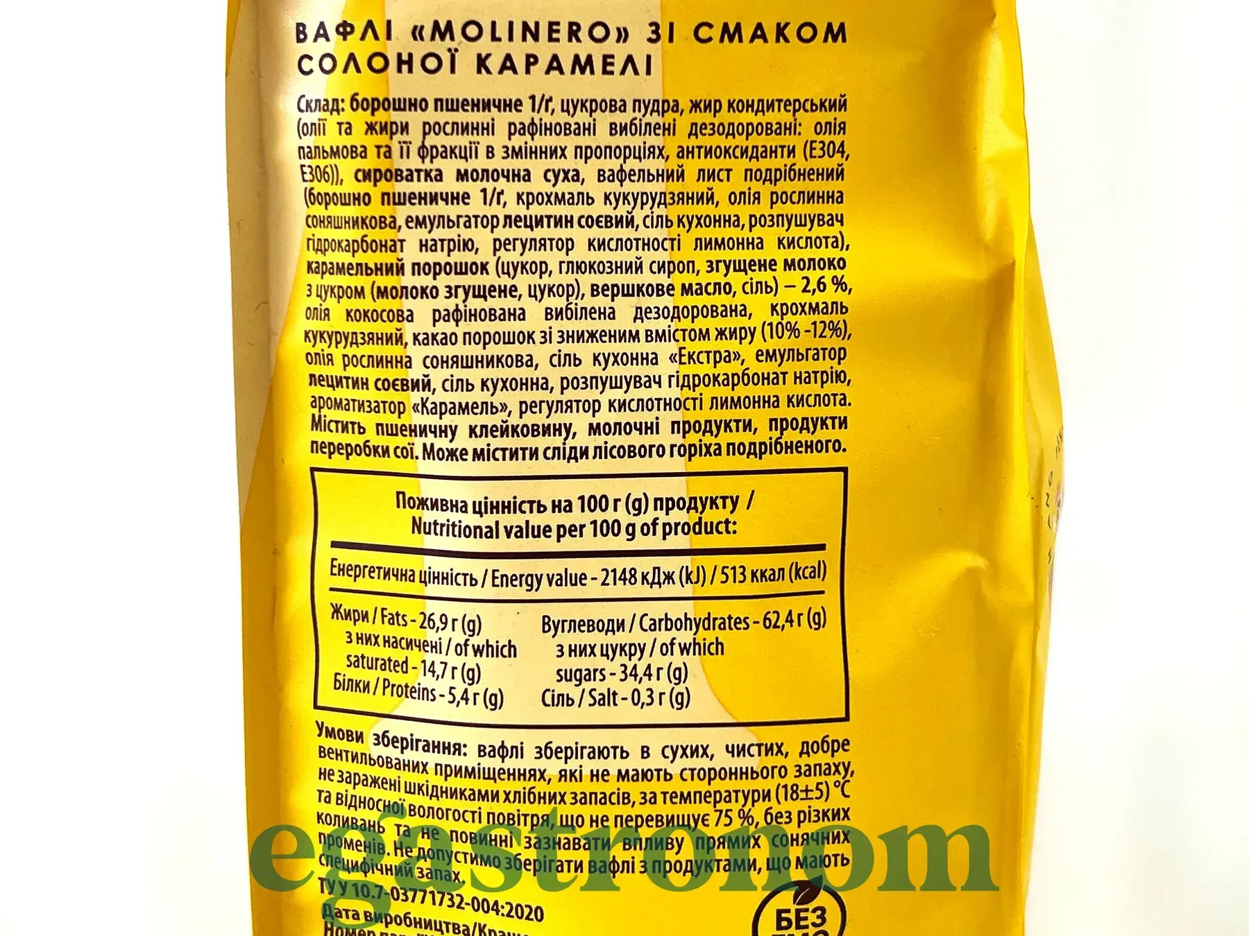Вафлі зі смаком соленої карамелі Молінеро Molinero 200g 10шт/ящ Вафлі зі смаком соленої карамелі Молінеро Molinero 200g 10шт/ящ. Зображення №2