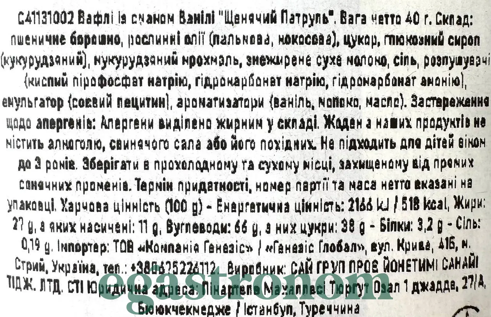 Вафлі зі смаком ванілі Щенячий патруль Paw patrol 40g 24шт/пач 6пач/ящ