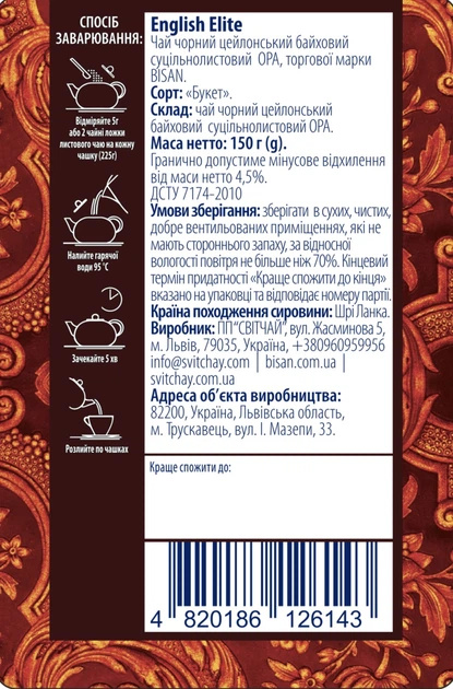Чай англійський елітний Бісан Bisan english elite 150g Чай англійський елітний Бісан Bisan english elite 150g. Зображення №2