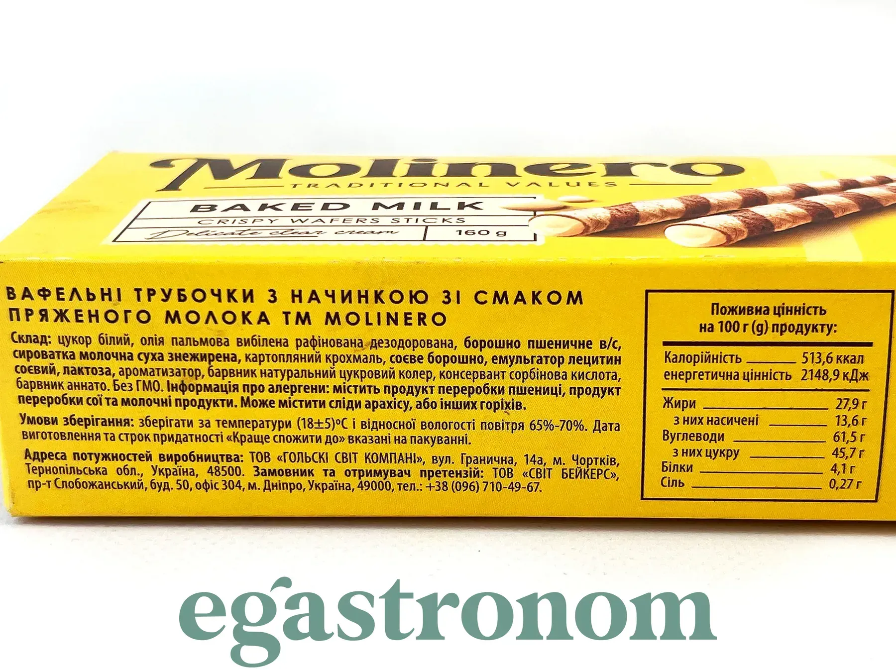 Вафельні трубочки зі смаком пряженого молока Молінеро Molinero 160g 18шт/ящ