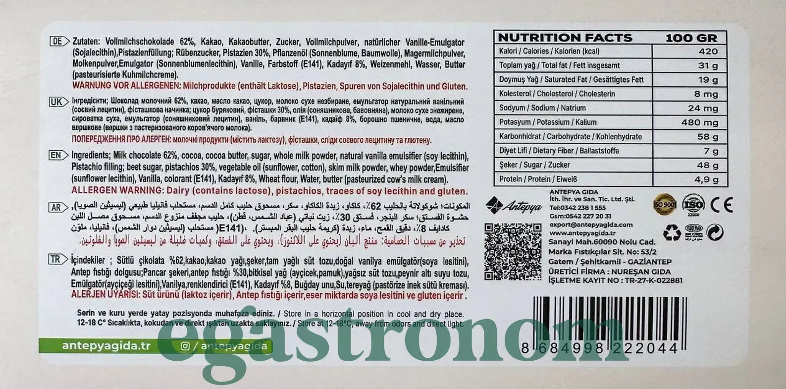 Шоколад Дубайський з фісташкою Антепія Antepya 190g 10шт/ящ Шоколад Дубайський з фісташкою Антепія Antepya 190g 10шт/ящ. Зображення №2