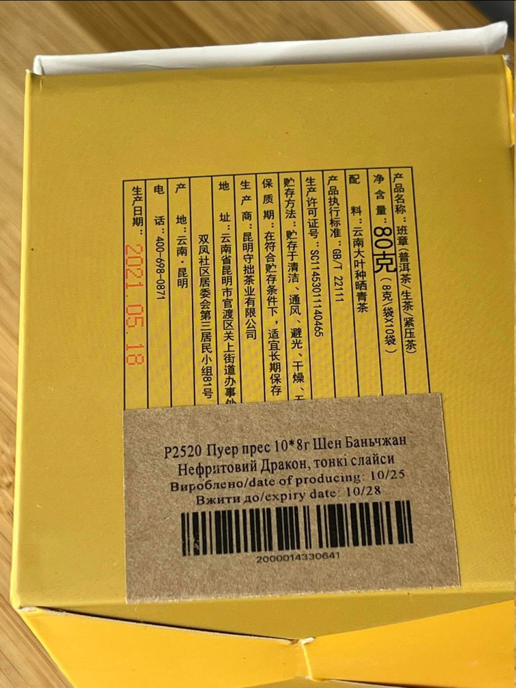 Пуер прес 10*8г Шен Баньчжан Нефритовий Дракон, тонкі слайси Пуер прес 10*8г Шен Баньчжан Нефритовий Дракон, тонкі слайси. Зображення №2 Пуер прес 10*8г Шен Баньчжан Нефритовий Дракон, тонкі слайси. Зображення №3 Пуер прес 10*8г Шен Баньчжан Нефритовий Дракон, тонкі слайси. Зображення №4