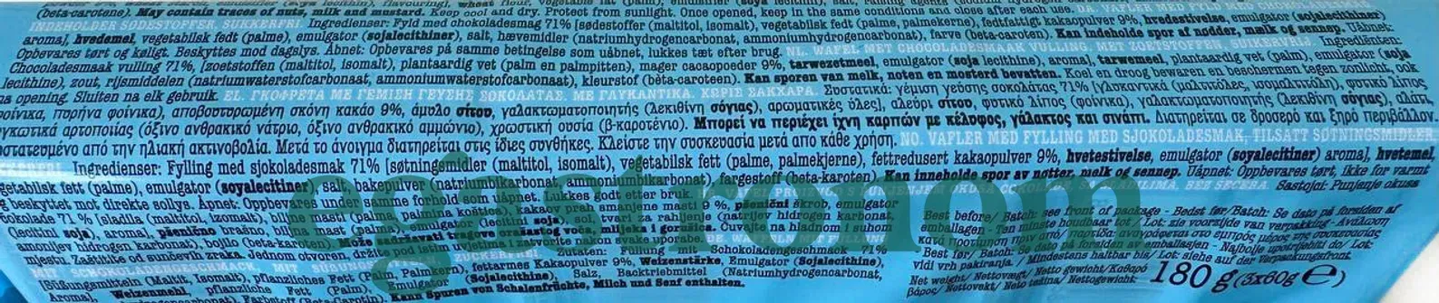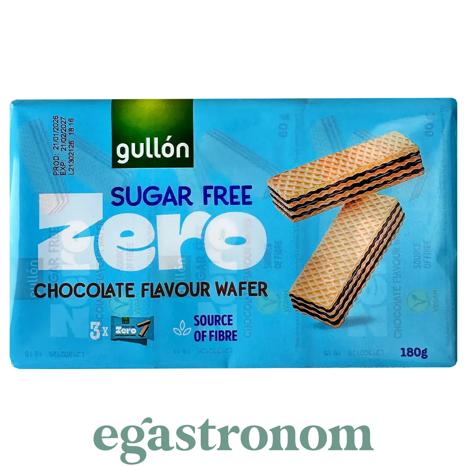 Вафлі з шоколадною начинкою (без цукру) Гулон Gullon 180g 12шт/ящ Вафлі з шоколадною начинкою (без цукру) Гулон Gullon 180g 12шт/ящ. Зображення №2
