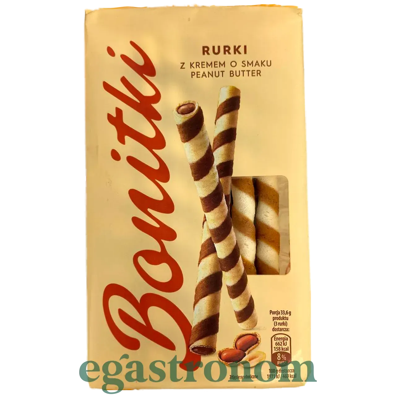Вафельні трубочки з арахісовою пастою рурки Бонітки Bonitki peanut butter 280g 12шт/ящ