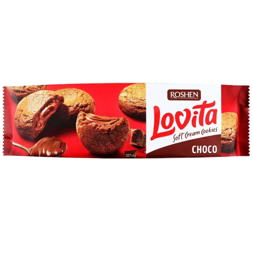 Печиво Roshen Lovita Soft Cream Cocoa 127 г - це здобне печиво з кремовою, шоколадною начинкою.