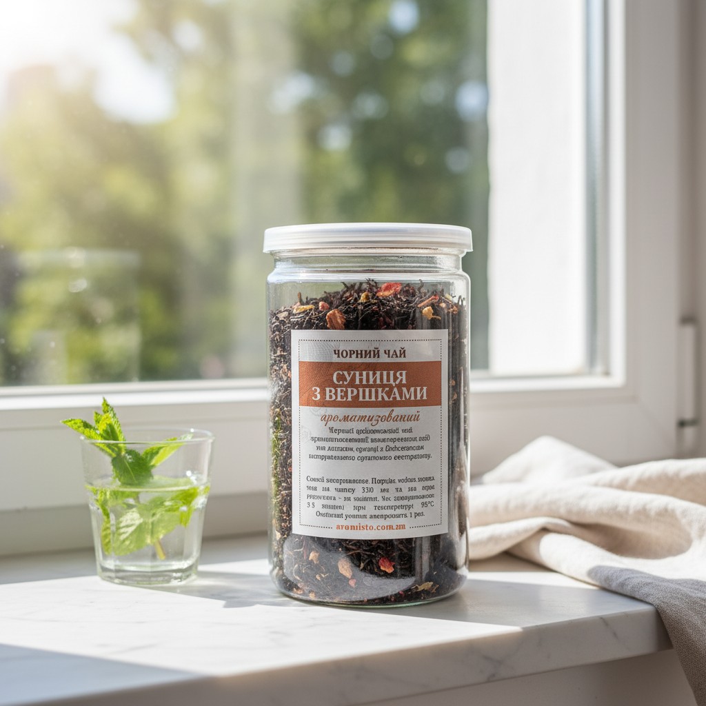 Чорний ароматизований чай в банці Суниця з вершками 100 г