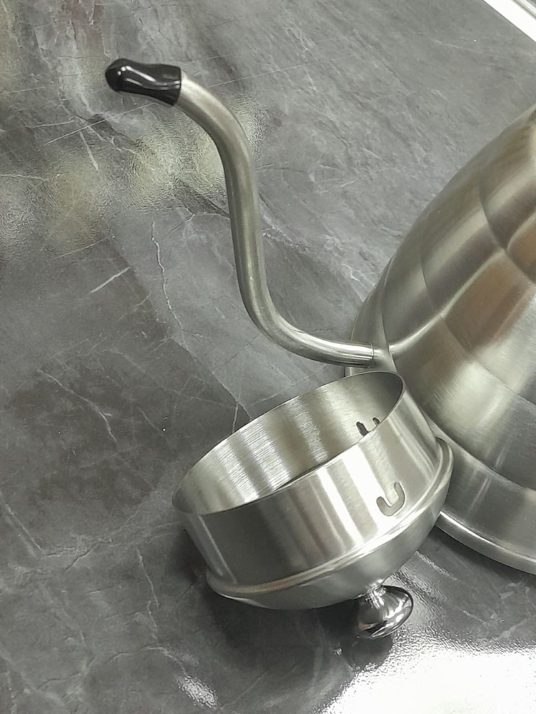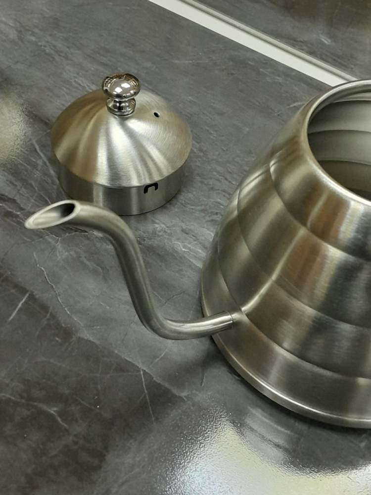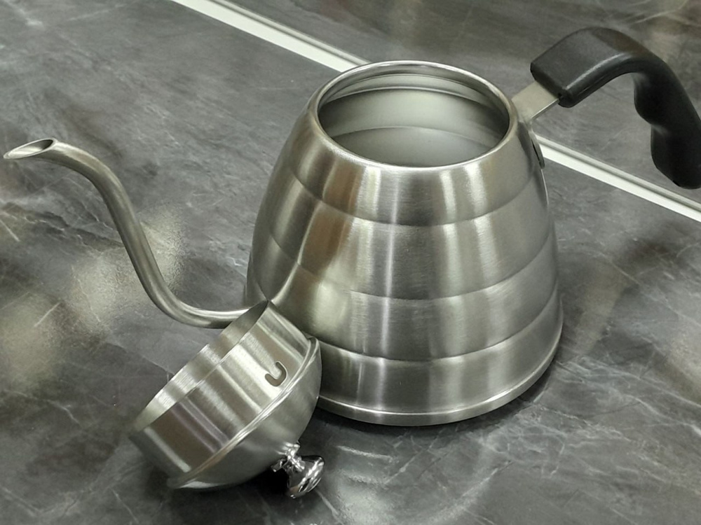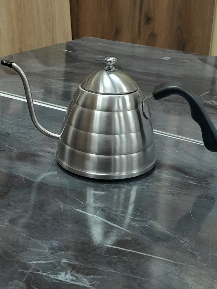 Виготовлений із якісної нержавіючої сталі. Чайник з довгим вузьким носікомз дозволить іочково наливати окріп. Зручна ручка зроблена з бакеліту, тому немає ризику обпектися гарячим металом.
