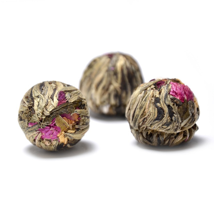 Вишуканий чорний чай із великим вмістом чайної бруньки, квіти амаранта та жасмину, що зв'язані у невелику порційну кульку, яка при заварюванні розкривається у вигляді святкового букета. Має насичений смак та злегка терпкий аромат із відтінками лісового горіха та кориці.