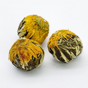 Зв'язаний китайський чай Срібна хризантема вирощують в одній із провінцій, у Юнь Нань. Продукт має форму бутону. При заварюванні він розкривається, оголюючи квітку хризантеми яскраво-жовтого кольору. До складу Срібної хризантеми входять листя білого плантаційного чаю і квіти хризантеми.
