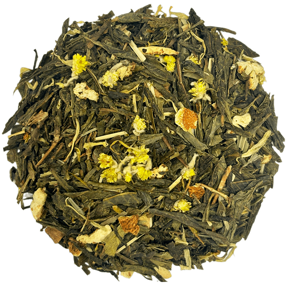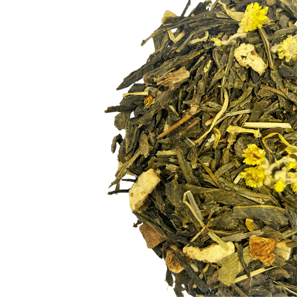 Зелений чай з яскравим ароматом лайма і лимона. Містить цедру лимона, лимонної трави, пелюстки календули і чорнобривців. Має гарну тонізуючу дію і приємний освіжаючий аромат.