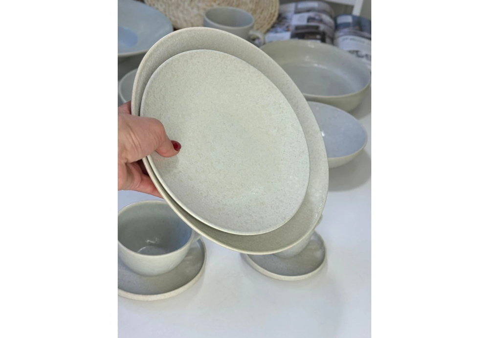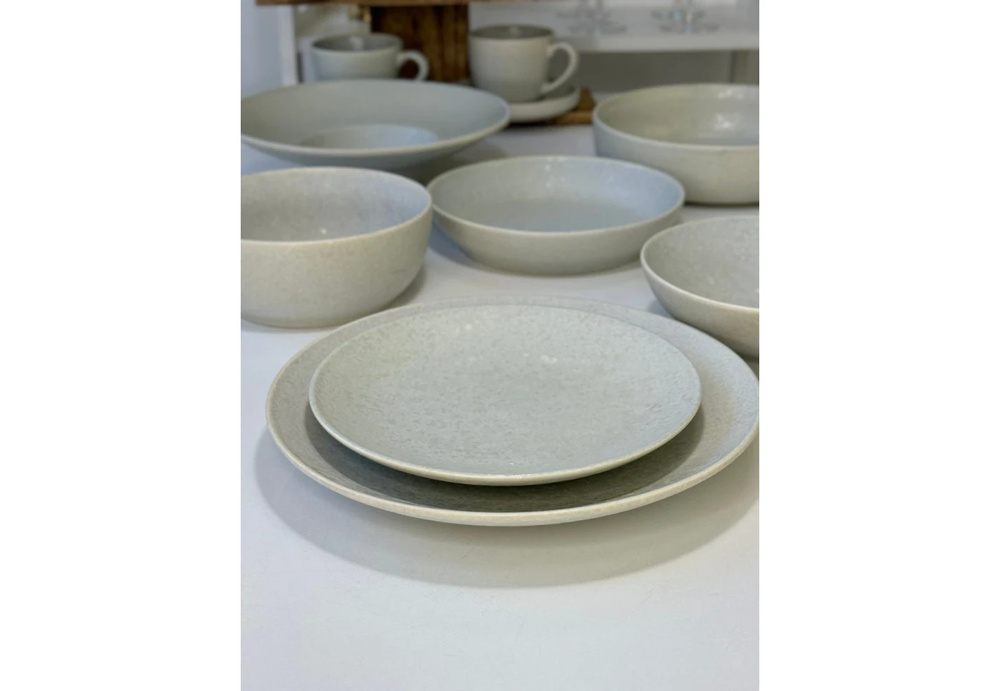 Тарілки серії "Крімі-дот" вирізняються сучасним мінімалістичним дизайном із вишуканим акцентом. Вони мають елегантний білий фон, прикрашений абстрактними крапчастими візерунками, що додають їм стилю та універсальності.