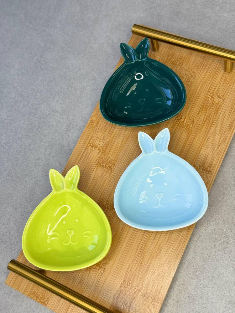 Декор із зображенням милого зайчика додає особливого шарму й тепла, тому ця тарілочка стане не лише корисною у побуті, а й чудовим елементом святкового чи дитячого столу.