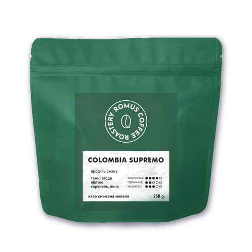 Спробуйте мелену каву Colombia Supremo від Romus.ua, щоб відчути справжню якість та аромат. Замовляйте зараз і скористайтеся швидкою доставкою по всій Україні. Обирайте найкраще і насолоджуйтесь кожним ковтком.