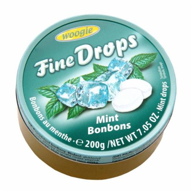 FINE DROPS Mint Bonbons - це освіжаючі м'ятні льодяники австрійської якості від компанії WOOGIE. Льодяники виготовлені з натуральних компонентів, допомагають пом'якшити кашель і зняти біль у горлі при застуді. М'ятні монпансьє WOOGIE упаковані в компактну і зручну бляшанку, тому їх можна зберігати вдома або брати з собою на роботу, навчання або прогулянку.