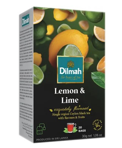 Чорний чай Dilmah Lemon & Lime у пакетиках 20 шт – це вдале поєднання дрібнолистового чорного чаю з плантацій Шрі-Ланки та лимона та лайма. Напій з такими добавками багатий на вітамін С. Природна цитрусова кислинка у поєднанні з терпкістю чорного чаю швидко підбадьорить вас, добре вгамує спрагу, наповнить життєвими силами на цілий день.