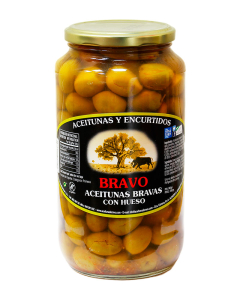 Оливки мариновані з кісточкою Bravo Aceitunas Bravas con hueso - оливки з додаванням часнику, перцю, винного оцту, спецій та соняшникової олії, що надає їм дуже апетитний пряний смак. Ці оливки відрізняються своєю м'якою текстурою.