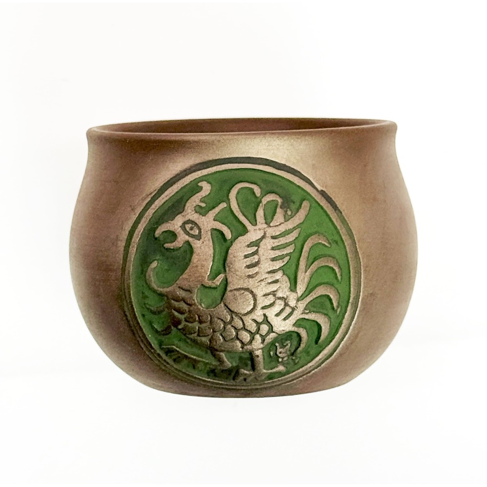 Піала глиняна Дракоша — стильний і функціональний елемент для справжнього чайного ритуалу. Виготовлена з натуральної глини, вона чудово зберігає тепло та підкреслює смак кожного сорту чаю, дозволяючи напою повністю розкритися. Завдяки компактному розміру 90 мл піала зручна для гунфу-ча або дегустацій різних сортів улуну, пуеру чи зеленого чаю. Теплий відтінок глини й лаконічна форма створюють атмосферу затишку та спокою, роблячи кожне чаювання особливим. Піала Дракоша стане чудовим доповненням до чайного набору або приємним подарунком для поціновувачів східної культури.