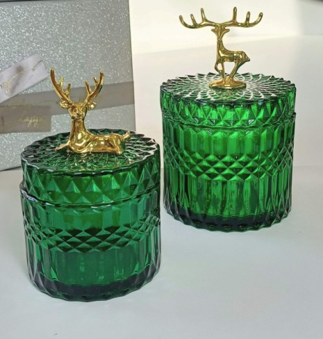 Цукерниця зелена «Срібний олень» мала 250 мл, 13,5x9 см