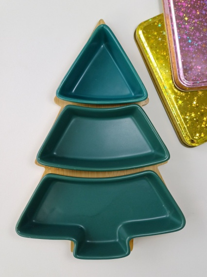 Цукерниця-соусниця 3-секційна 26x15x5 см «Зелена ялинка»