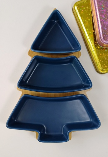 Цукерниця-соусниця 3-секційна 26x15x5 см «Синя ялинка»