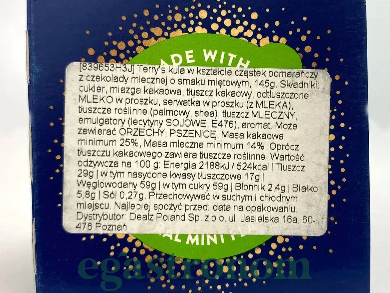 Шоколадний апельсин молочний м'ята Терріс Terrys milk mint 145g 12шт/ящ