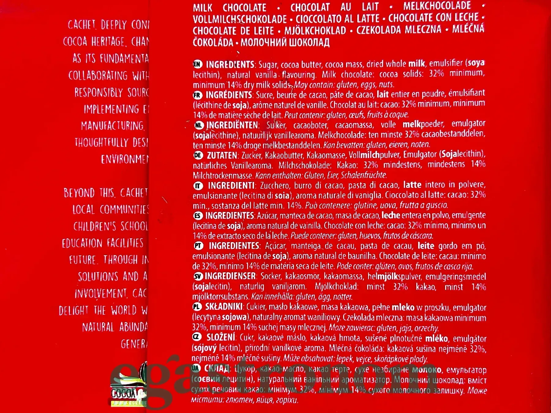 Шоколад Кашет №41 молочний шоколад Cashet milk 300g 12шт/ящ Шоколад Кашет №41 молочний шоколад Cashet milk 300g 12шт/ящ. Изображение №2