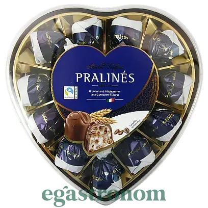 Цукерки праліне з молочного шоколаду з горіховим кремом та зернами злаків в коробці у формі серця. ТОП запити Ціни на пральні порошки Жувальна гумка Плямовивідники Засіб для миття посуду ціна Напій енергетик Чистячі засоби Купити таблетки для посудомойки