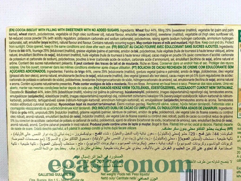 Печиво какао з кремом в індивідуальній упаковці, щоб насолоджуватися будь-де. Без додавання цукру: цукор, що міститься в цьому печиві, природним чином міститься в інгредієнтах, з яких воно зроблено, наприклад, у злаках. Високий вміст клітковини: оскільки воно містить не менше 6 г клітковини на 100 г продукту. Експерти рекомендують дорослим людям щодня вживати від 25 до 35 г клітковини. ТОП запити Імпортні продукти харчування Йогурт Сухий сніданок Миючі засоби для ванної кімнати Універсальні миючі засоби Засоби чищення Соус бальзамічний