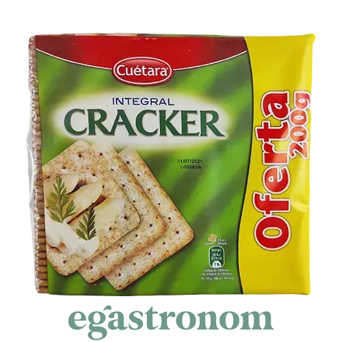 Крекер цільнозерновий Integral Cuetara Cuetara - ідеально підходить для перекусу. Це смачні крекери, які роблять вечірки і закуски ще веселішими і смачнішими. Вони ретельно запечені (не смажені) і мають м'яку, але хрустку текстуру ТОП запити Ціни на олію Ціна на горіхи Соус до салатів Ковбаса купити Сир маскарпоне купити Сир камамбер купити Крупи купити