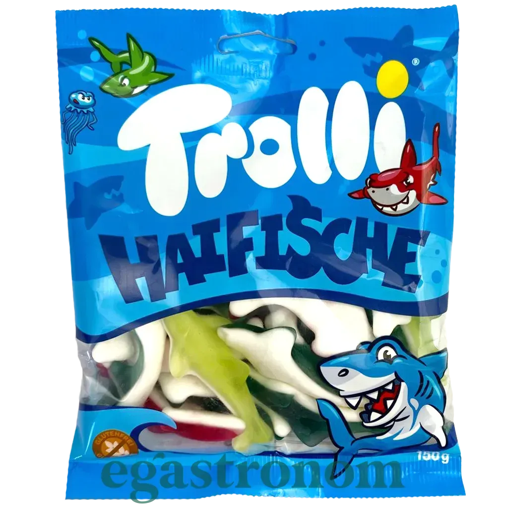 Желейки у формі акул різних кольорів з фруктовим смаком. Желейки "Троллі" на основі натуральних соків. У складі цукерок використовуються тільки натуральні компоненти, а в якості желеутворювача, унікальне природне речовина карагінан. Це не тільки смачні, але і корисні ласощі! ТОП запити
