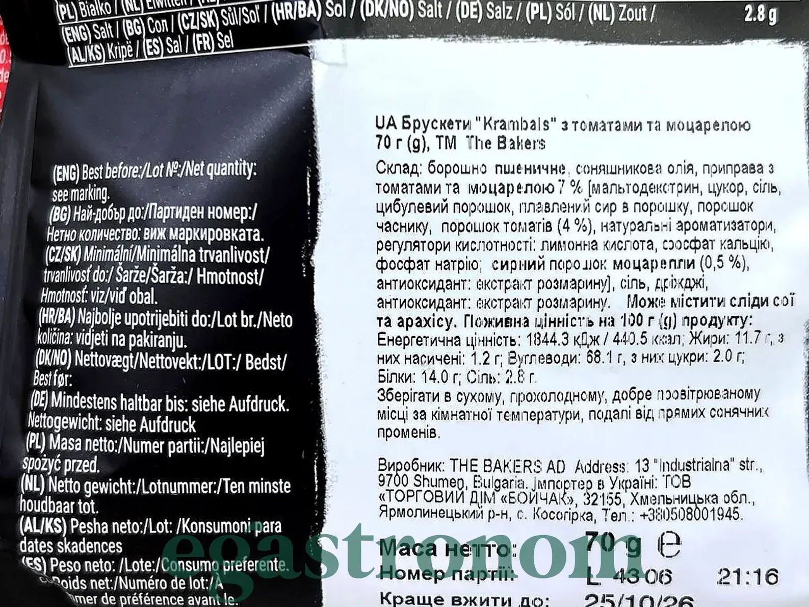 Брускети з томатами та моцарелою Крамбалс Krambals 70g 12шт/ящ Брускети з томатами та моцарелою Крамбалс Krambals 70g 12шт/ящ. Изображение №2