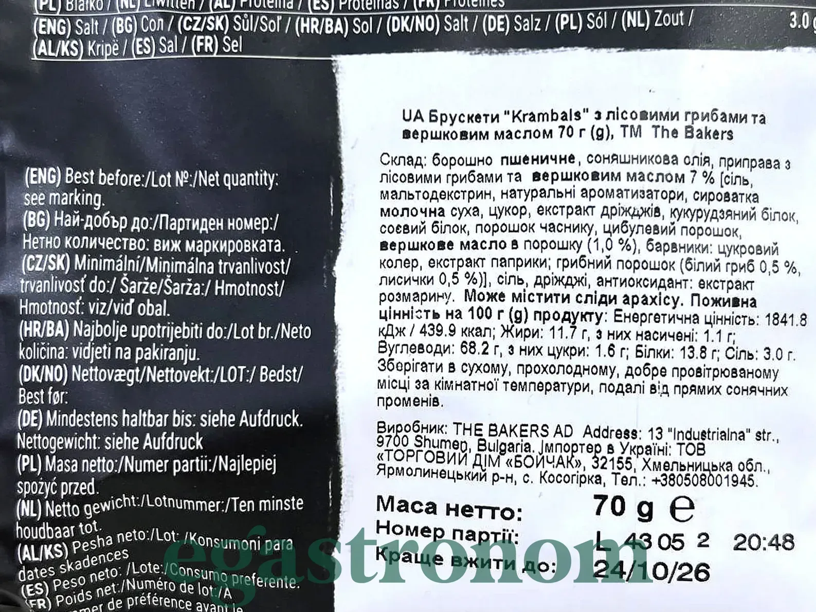 Брускети зі смаком грибів Крамбалс Krambals 70g 12шт/ящ Брускети зі смаком грибів Крамбалс Krambals 70g 12шт/ящ. Изображение №2