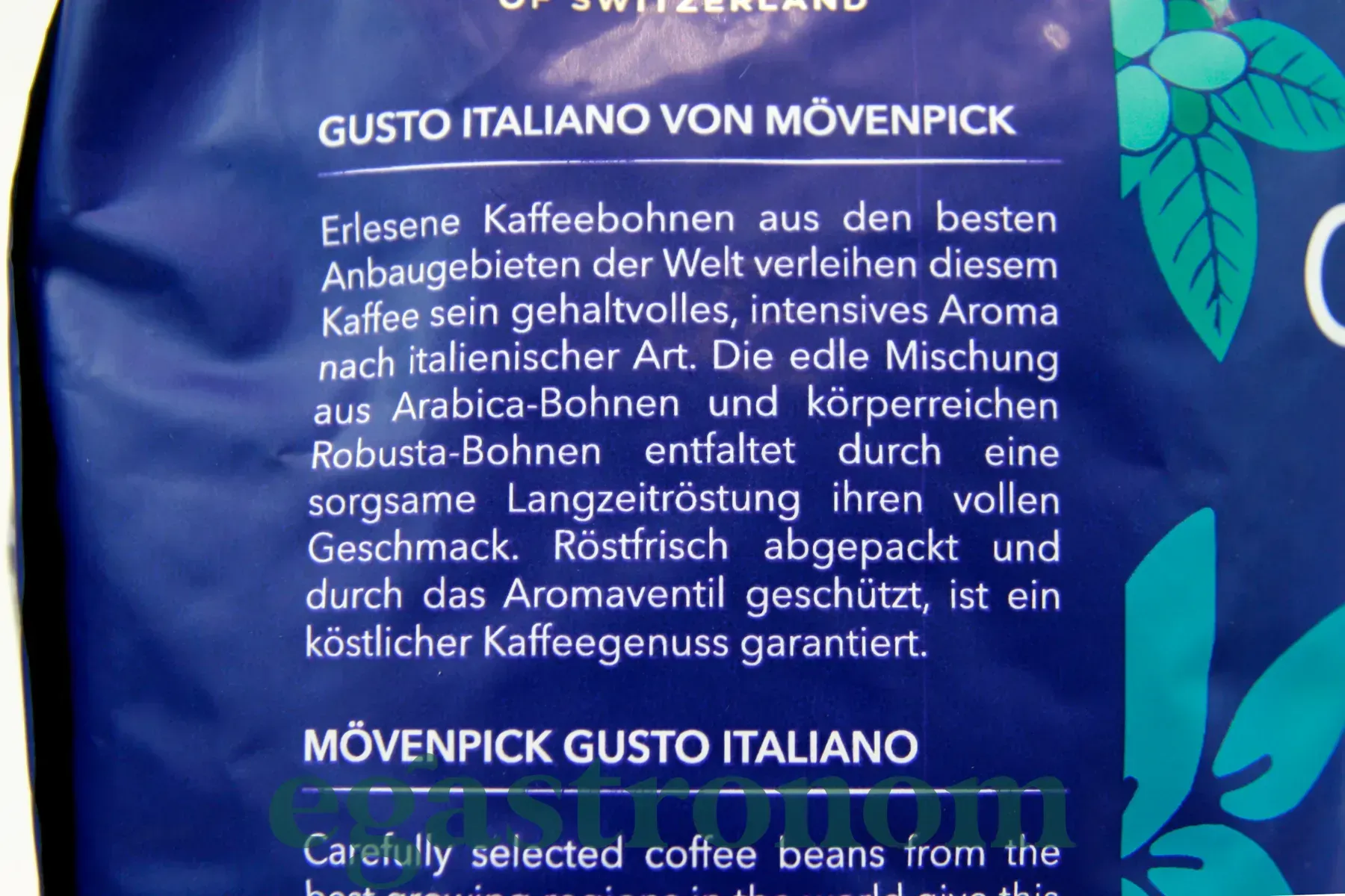 Суміш з арабіки (90%) і робусти (10%) з Центральної Америки і Африки. Зерна піддаються "італійської" темної обсмажуванні. Такий ступінь обсмаження дає зернам виразний карамелізований відтінок. Кава приготований з зерен Movenpick Caffè Crema Gusto Italiano має оксамитову пінку, інтенсивний аромат з відтінками шоколаду в смаку. Ця кава відмінно підійде для приготування еспрессо, а також напоїв з молоком, таких як капучино і латте макіато. ТОП запити Чай замовити Імпортні продукти в україні Купити солодощі з європи Цукерки Маслини і оливки Тверді сири Засоби захисту від сонця