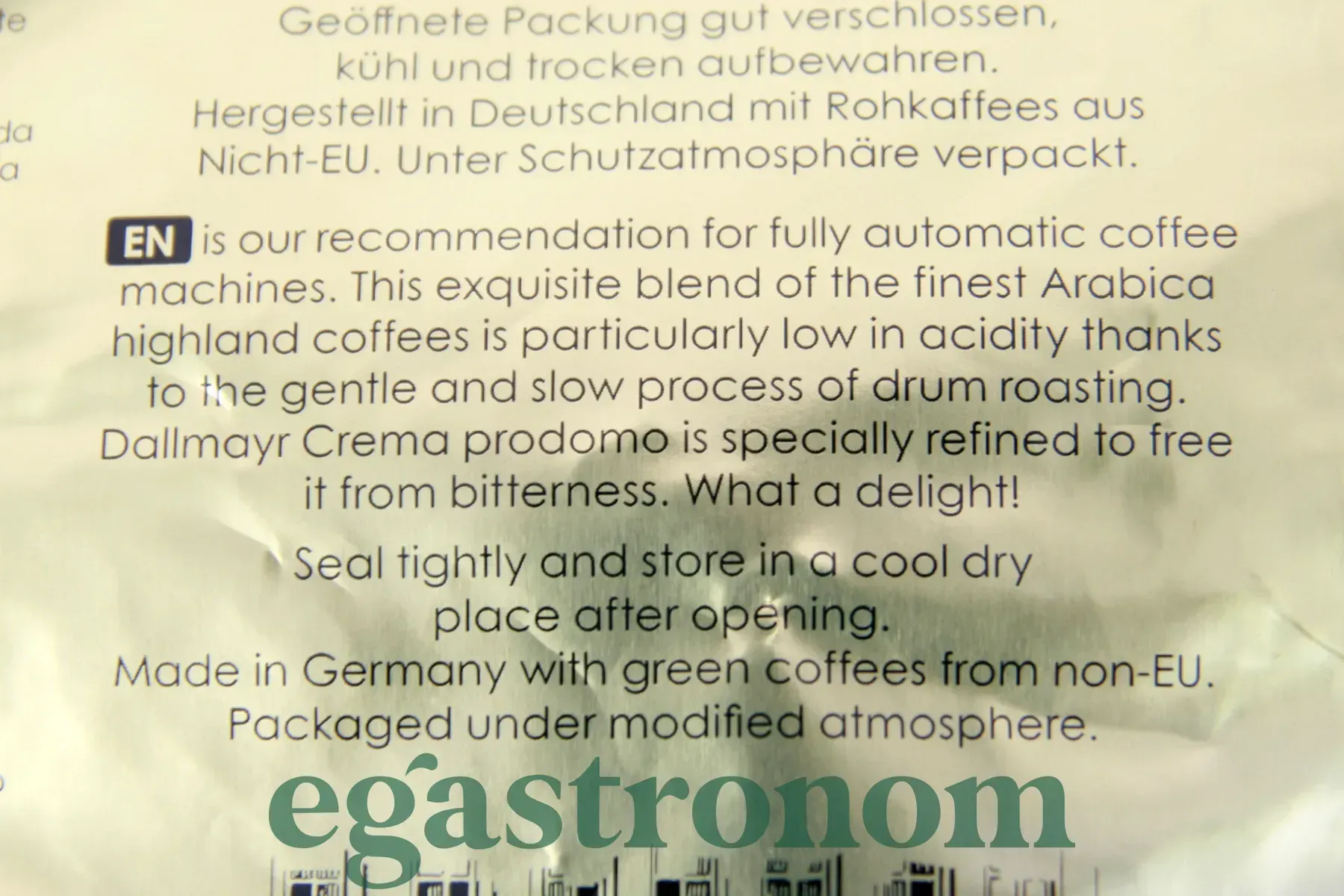 Dallmayr Crema – це зерна з Ефіопії, батьківщини кращої кави. Ефіопська арабіка володіє низькою кислотністю, в ній відсутній гіркоту, а при споживанні відчуємо тільки чудовий чистий кавовий смак. Іншими перевагами продукту є: універсальність - після вибору актуальною ступеня помелу, можна готувати напій яким зручним вам способом; ніжний, збалансований смак - завдяки збереженню багатьох природних властивостей кави; наявність кофеїну, який здатний чинити на організм тонізуючу дію, а також антиоксидантів, що руйнують вільні радикали; бездоганні смакові якості, як чистого напою, так і при доповненні його молоком, сиропами або вершками. ТОП запити Ціни на масло вершкове Жуйки купити Цукерки купити Плямовивідники Купити маргарин Купити вафлі Сир грано падано