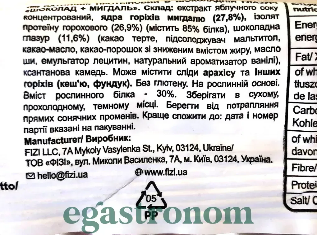Батончик протеїновий шоколад та мигдаль (без цукру) Фізі Fizi choco almond 45g 10шт/ящ Батончик протеїновий шоколад та мигдаль (без цукру) Фізі Fizi choco almond 45g 10шт/ящ. Изображение №2